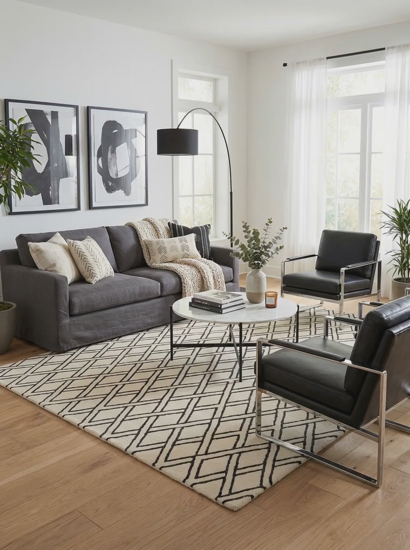 Tapis 100% Laine Ivoire & Noir - Hudson